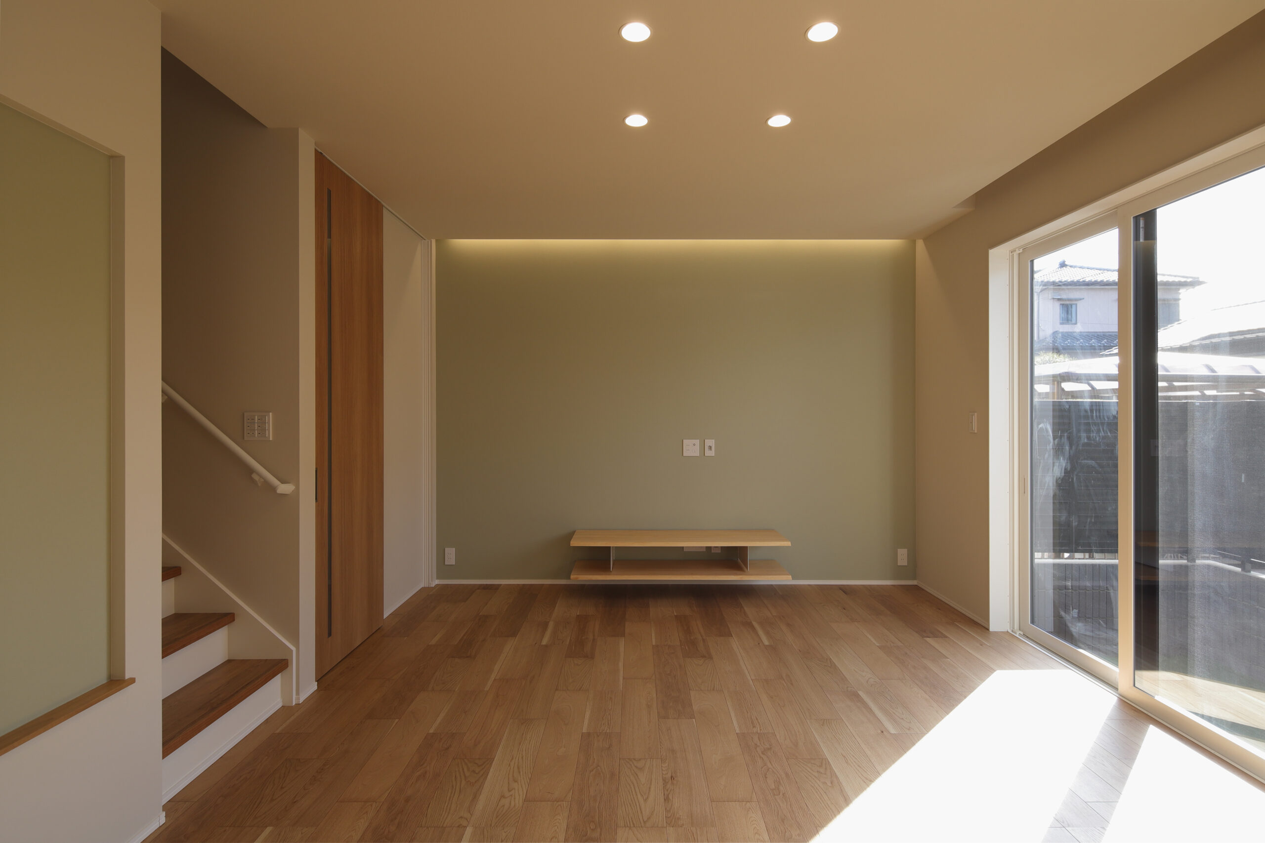 ニュートラルカラーでコーディネートされやわらかな陽光が差し込む居心地のよいリビング家事効率のよい回遊・ランドリー動線一人時間を楽しむDEN