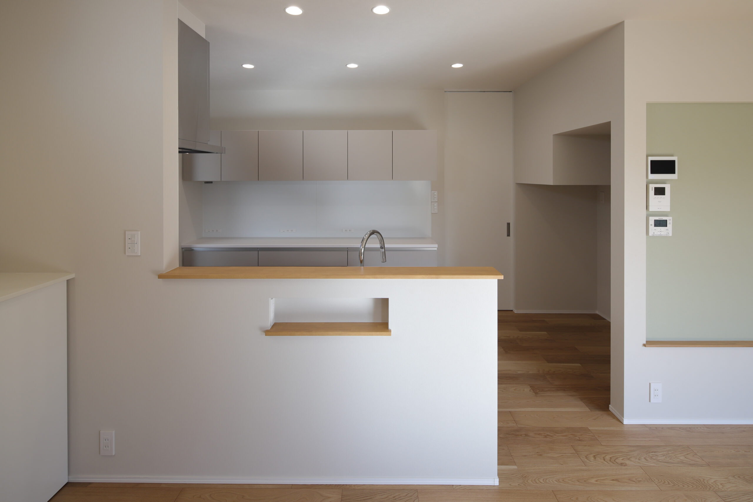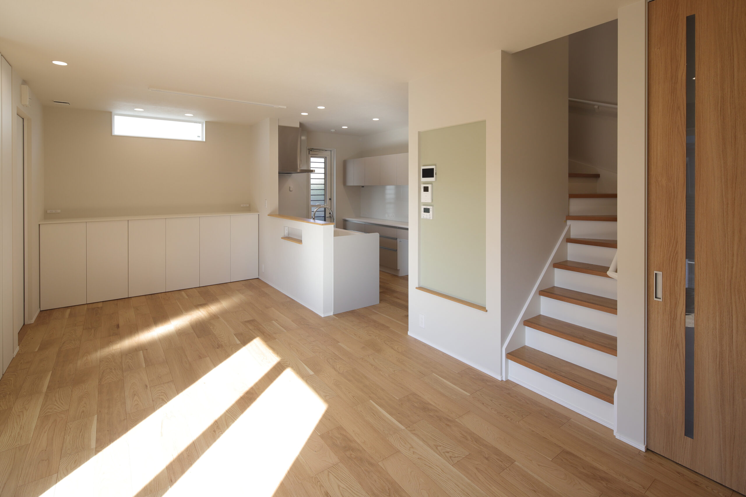 シンプルな中にも必要不可欠な要素をコンパクトにまとめお家全体の一体感のなかで家族みなが思い思いにでも お互いの気配に安心しながら暮らせる理想の家が完成しました